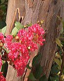 実はやや細い球形(写真右下)で、中に翼のある種子をもち、10〜11月に熟します。樹皮は薄く剥がれると灰白色と褐色の斑紋が現れ、その幹肌の美しさ(写真左)は床柱にも利用されます。また風情のある枝ぶりや、花を長く楽しめることもあって庭植えや街路樹にもよく植えられています。樹高は2〜6m。開花期は7〜10月で鉢の市販期は6〜9月、種子は3〜5月頃です。画像は画像は「L・タスカ ローラー(写真左)」、「L・ディア パープル (写真右上)」、「L・トント(写真右3番目)」です。